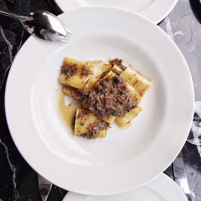Paccheri genoves stili hazırlanan dana yahni… Et ağızda eriyor. Menüdeki diğer favorim…